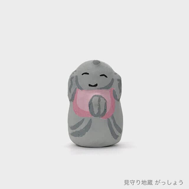 お地蔵さまペーパーウェイト。がんばるあなたのそばでいつもニコニコと見守り、あなたを癒やしてくれます。 種類:たびだち・ほうじゅ・がっしょう・ざぜん・おじゅず・くつろぎ 約 w30 / h45 / d30mm