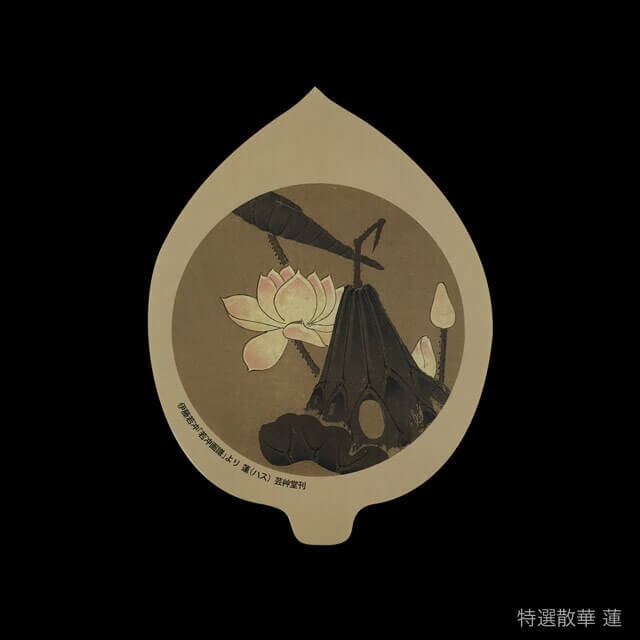 江戸時代中期に京都で活躍し、「奇想の画家」として現在もなお高い人気を誇る若冲。明治24年に、京都で創業した木版摺技法による美術出版社「芸艸堂」。現在では唯一の手摺木版和装本を刊行する出版社となっています。若冲・雪佳ほか貴重な版木を多数所蔵。本散華はその木版画からオフセット印刷にて制作致しました。 サイズ:約 h115/w88mm